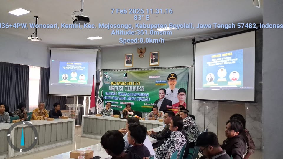 BOYOLALI – Majelis Daerah (MD) Korps Alumni Himpunan Mahasiswa Islam (KAHMI) Boyolali menggelar diskusi terbuka bertema refleksi satu tahun kepemimpinan Bupati dan Wakil Bupati Boyolali. Kegiatan tersebut diselenggarakan dalam rangka memperingati Hari Ulang Tahun (HUT) ke-79 Himpunan Mahasiswa Islam (HMI), Sabtu (8/2/2026), bertempat di Kantor Badan Kesatuan Bangsa dan Politik (Kesbangpol) Boyolali.
